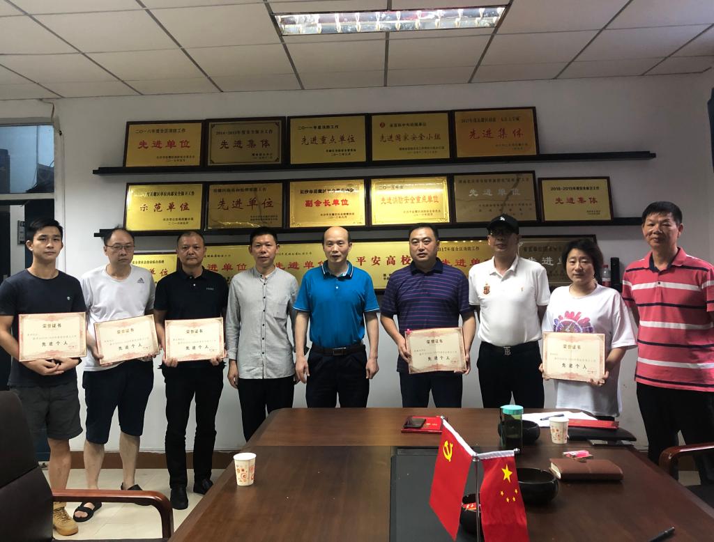 会上,黄松柏处长传达了学校新学期工作会议的精神;粟仁良副处长对下半年的工作进行了安排;李峻清副处长宣读了湖南省公安厅《关于表彰2018—2019年度省级治安保卫重点单位保卫工作先进集体和先进个人的决定》;夏曙光副主任宣读了2019年度考核优秀人员名单;刘远志书记宣读了2019年度WilliamHill(威廉希尔)官网优秀共产党员名单,并进行颁奖。黄松柏强调,全处同志要以先进个人为榜样,工作中履行职责,努力做好本职工作,为学校的安全保卫工作贡献自己的力量。