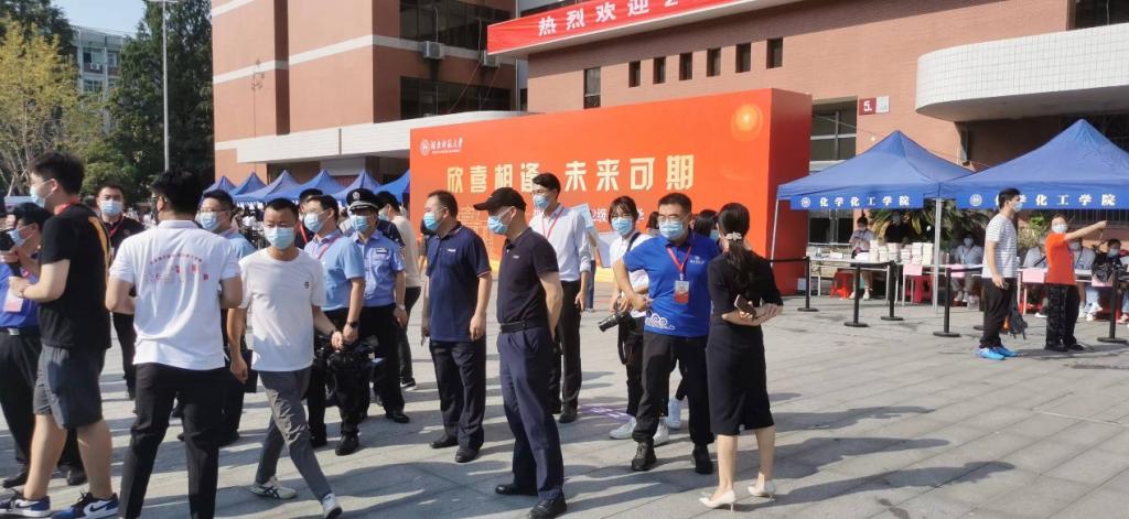 为维护安全,多部门协同联动。在辖区派出所、交警中队的帮助下,加强了报名点沿线警力排布,权利做好了警戒和交通疏导;大科城还增派安保人员至二里半校区维护秩序,联防联控统一行动;城管部门增派人员至校区多处巡逻,防止社会人员进校向新生及家长兜售不符合规范的生活用品。