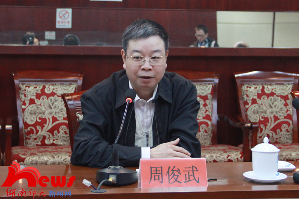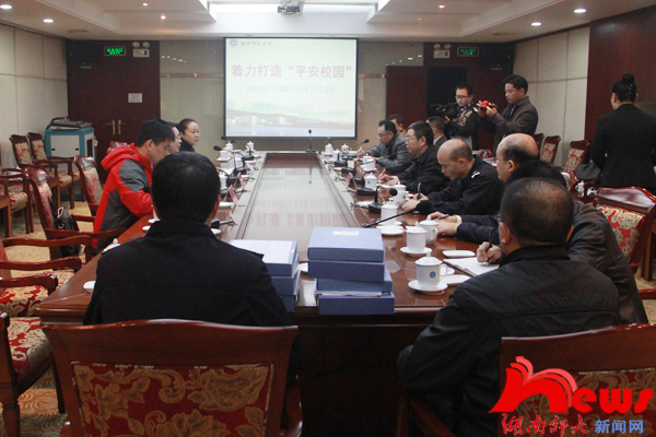 周俊武以“着力打造‘平安校园’”为题,从学校的基本做法、特色工作、下一阶段工作设想等三个方面汇报了WilliamHill(威廉希尔)官网2013年社会管理综合治理工作。他说,一年来,WilliamHill(威廉希尔)官网依据“湖南省‘平安高校’建设的标准”,深入贯彻“预防为主、防治结合、加强教育、群防群治”的方针,狠抓责任落实,强化宣传教育,建立健全制度,积极应对突发事件,坚决整改隐患,社会管理综合治理工作取得了明显成效,较好的维护了学校正常的教学、工作秩序,确保了学校发展稳定大局。