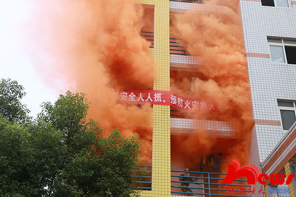 演习中,天马学生公寓16栋三四楼层冒出浓烟,火情发生。阳台上被困学生挥舞毛巾、衣服求救,并拨打火警电话(119),在老师的指挥下,同学们用湿毛巾捂住嘴鼻,有序从安全通道逃生。消防车呼啸而至,麓山门消防中队的消防官兵及时赶到进行救援,帮助被困学生逃离火灾现场,或协助同学跳上安全气垫,或用担架抬出受伤学生,最后将火扑灭。随后,麓山门消防中队李副中队长向同学们介绍学校教学楼、寝室及外出游玩时可能存在的火灾隐患和逃生技巧,并讲解了干粉灭火器和自动呼吸器的使用方法,让学生亲身体验如何灭火。参加演练的一名新生告诉记者,这次演练让他学到了很多知识,发生火灾时,一定要保持冷静,听从消防官兵和老师的指挥,是最重要的。据悉,此次消防演练是军训的一个重要内容,旨在提高同学们的防灾减灾意识,掌握一定的自救技巧。